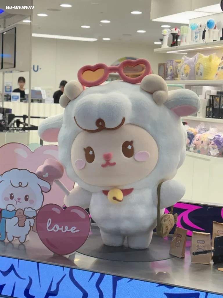 위드뮤의 마스코트 '뮤(MUU) 캐릭터 조형물을 제작하였습니다. 양 캐릭터의 보송함을 살리기 위해 흰색 몸체는 보아 원단을 사용하였습니다. 선글라스와 뿔, 방울은 모두 탈부착이 가능하도록 제작하였으며 응원봉은 끼울 수 있는 홈을 제작하여 상황에 맞춰 교체가 가능합니다. 조형물 하단엔 베이스 플레이트를 설계, 부착하여 안정적인 자립이 가능하며 현장 사진과 같이 기성 소품을 추가하여 다양한 연출이 가능합니다.