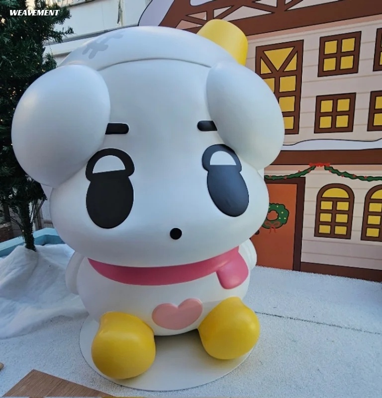 에스파 윈터님의 캐릭터 '직직이' FRP 조형물을 제작하였습니다. 포맥스 스카시로 2.5D의 이목구비 입체감을 표현하고 조형물 하부에 베이스플레이트를 설치하여 안정적인 자립이 가능합니다. 완성된 대형 모형은 생일 카페에 납품되어 행사를 즐기는 많은 팬분들께 관심과 사랑을 받았습니다.